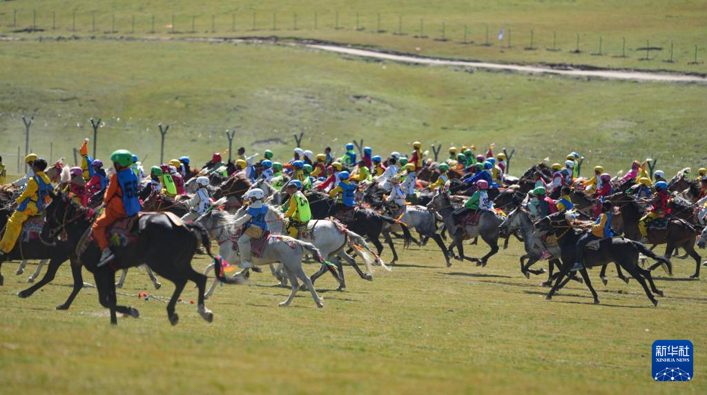 12日,10公里傳統(tǒng)大跑項(xiàng)目開賽,上百匹駿馬在草原上揚(yáng)蹄疾奔,騎手多是十來歲的少年。15歲的普扎巴從6歲開始做騎手,曾騎著當(dāng)?shù)卦S多名馬到各地參加比賽,拿過多次冠軍。“我相信這次也能拿第一名。”10日,他在馬背上對(duì)記者說。