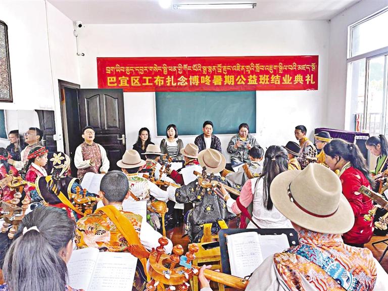 工布扎念博咚,是林芝傳統(tǒng)音樂,也是國家級(jí)非物質(zhì)文化遺產(chǎn)。此次暑期公益培訓(xùn)班邀請(qǐng)了經(jīng)驗(yàn)豐富、技藝精湛的扎念老師進(jìn)行授課,向?qū)W員傳授工布扎念博咚的演奏技巧、音樂理論和文化內(nèi)涵。