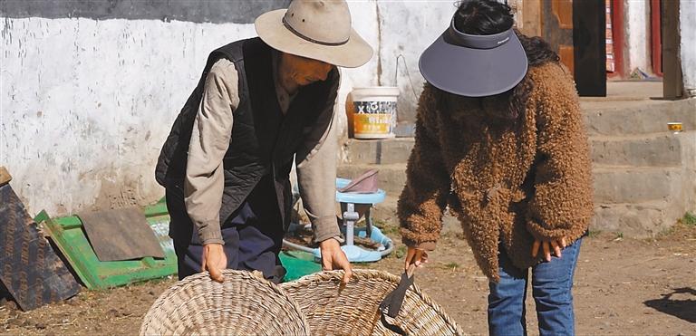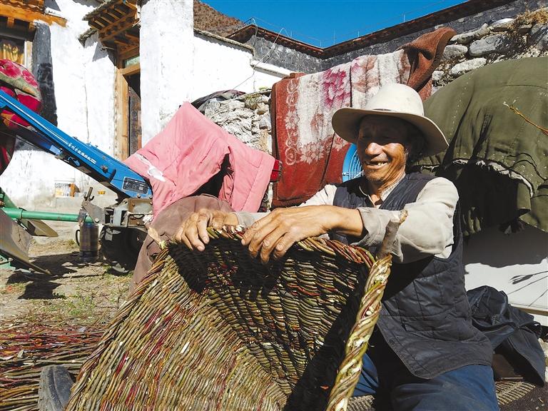 在墨竹工卡縣扎雪鄉(xiāng)格老窩村,記者走進(jìn)阿若家的小院。院內(nèi),堆積的柳條旁是忙碌的阿若,他的手指在柳條間穿梭,一個(gè)個(gè)柳條筐子逐漸成形。