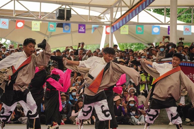如今,隨著城鎮(zhèn)化發(fā)展,鍋莊漸漸融入人們的日常生活,成為很多人晨練和廣場舞的首選,刷新著人們對于傳統(tǒng)廣場舞的認識?!拔覀兠褡宓膫鹘y(tǒng)舞蹈‘鍋莊’從農牧區(qū)跳到城市,跳進了大眾的日常生活,我感到很自豪。”來自那曲市的德慶卓瑪說。