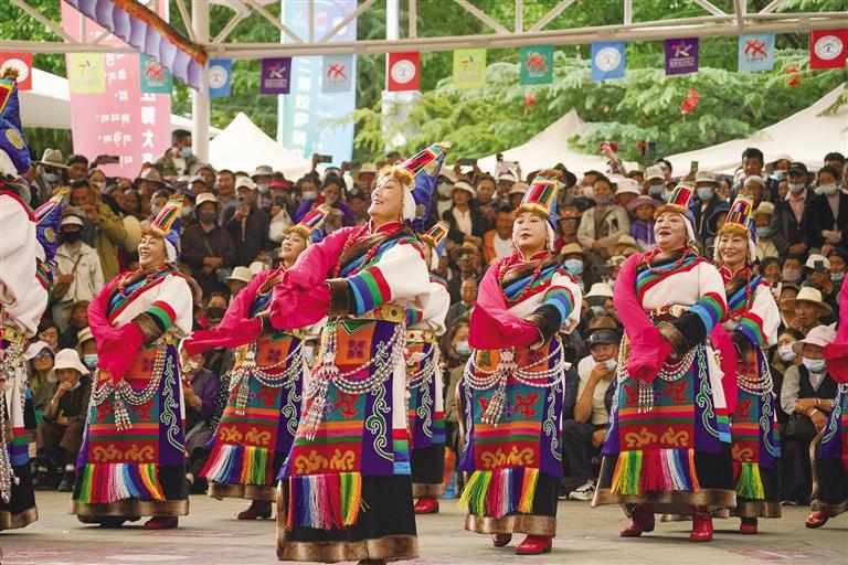 音樂響起,大家隨著節(jié)奏舞動,每個人舉手投足間都是那么自然和率真,大家著裝各異、民族各異,但是所有人臉上洋溢著幸福歡快的笑容。在這里,傳統(tǒng)和現(xiàn)代交織,民族文化交往交流交融。