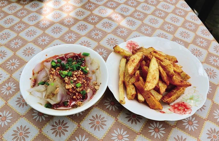 除了真實而美好的環(huán)境,涼粉店當然以涼粉為主打??ú翛龇鄣甑臎龇蹆r格親民,Q彈爽滑的涼粉配上店家特制的辣椒,再撒上一層花生碎,看似簡單口感卻層次豐富,讓人回味無窮。除了涼粉,卡擦涼粉店還供應炸土豆、涼面等具有代表性的拉薩小吃。嗦粉吃面的同時,能真正感受到日光之城的溫暖和花朵的治愈,這樣的美好體驗可能就在你身旁的小店中。