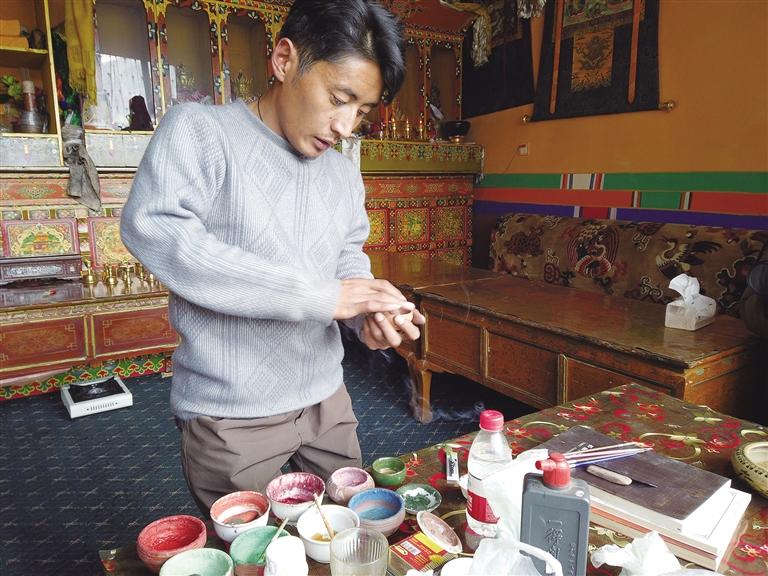 屋內(nèi),是他伏案繪制唐卡的專(zhuān)注身影;身旁,是父母欣慰的目光與陪伴。“自從學(xué)會(huì)了唐卡繪畫(huà)后,我一直在拉薩就業(yè)謀生,但由于家里有年邁的父母需要照顧,我就回到家里一邊照顧父母,一邊繪畫(huà)定制的唐卡。這樣不僅有穩(wěn)定的收入,還能像其他人一樣靠自己的雙手過(guò)上幸福的生活?!蹦岈敶稳始?dòng)地告訴記者,他的話(huà)語(yǔ)中充滿(mǎn)了對(duì)生活的感恩和對(duì)未來(lái)的信心。
