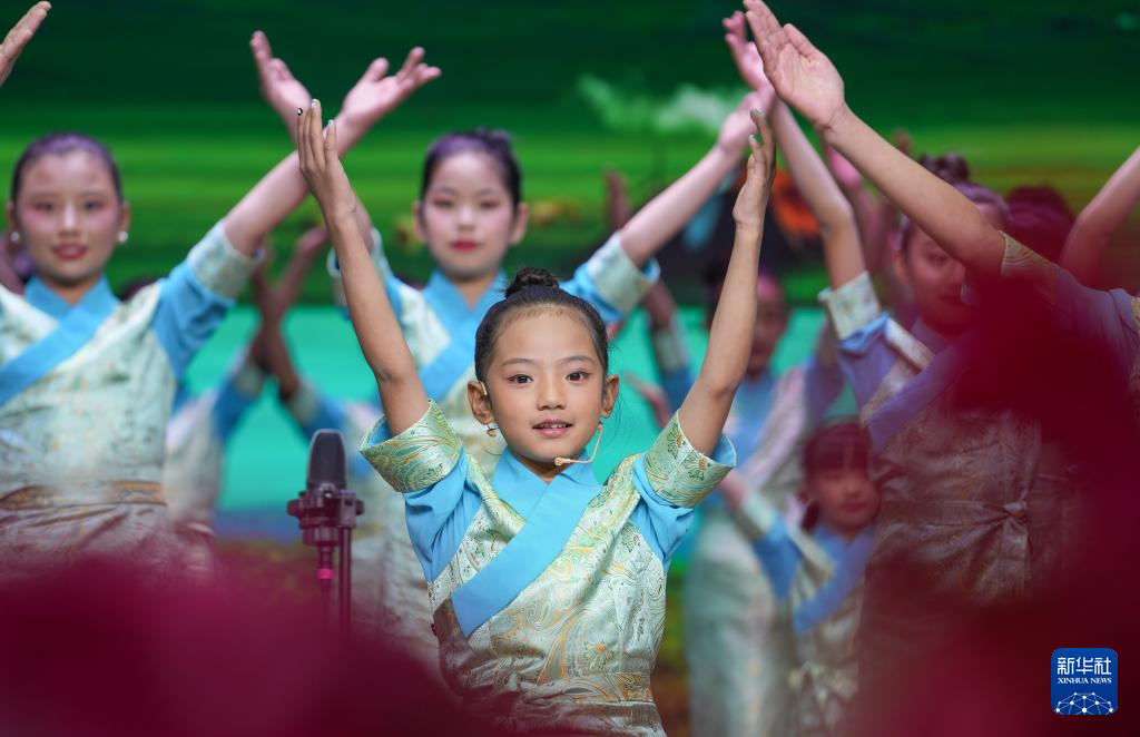 12月28日拍攝的西藏首屆少兒新年音樂會暨西藏珠峰少年合唱團(tuán)2024年匯報(bào)演出現(xiàn)場。新華社記者 晉美多吉 攝