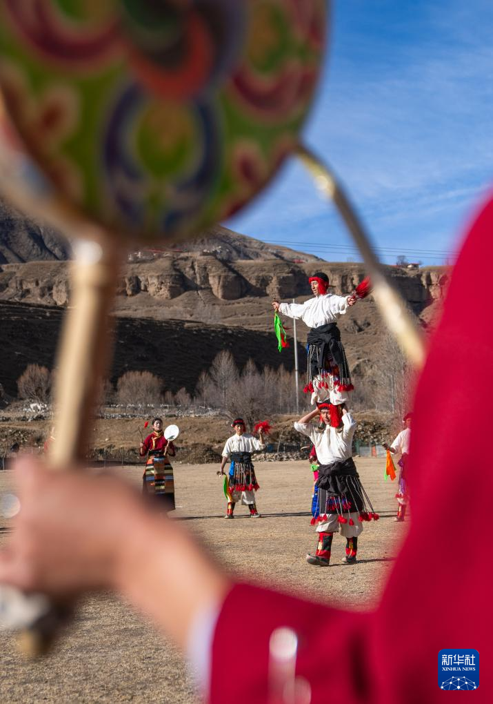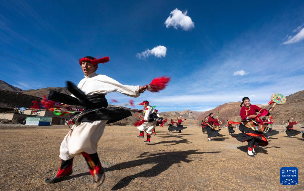 西藏昌都市丁青縣尺犢鎮(zhèn)烏巴村文藝演出隊在跳熱巴舞(1月5日攝)。新華社記者 丁增尼達 攝 ??