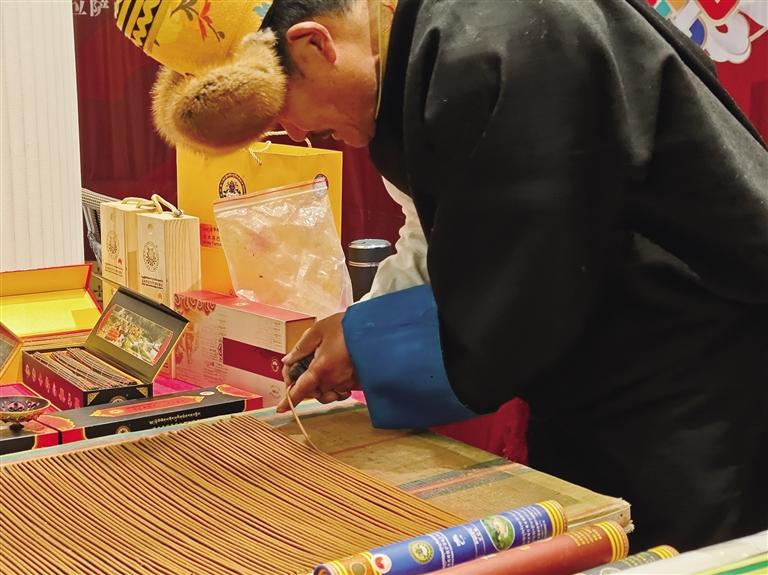 展銷(xiāo)活動(dòng)現(xiàn)場(chǎng),一股淡雅香氣彌漫開(kāi)來(lái),藏香展位上,線香靜靜燃燒。拉薩市級(jí)非物質(zhì)文化遺產(chǎn)代表性傳承人加措正在制作藏香,吸引不少人駐足觀看。市民鄭先生說(shuō):“以前只見(jiàn)過(guò)藏香成品,第一次看制作過(guò)程,很驚喜。春節(jié)申遺成功后,非遺受關(guān)注更多,希望西藏非遺好物能被更多人了解!”