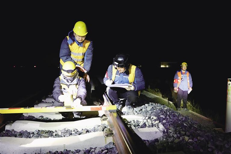 “激光測量儀一定要在軌面上放平放正,并且鎖好安全扣,這樣測出來的數(shù)據(jù)才精準。”2月17日,夜幕籠罩下的拉林鐵路一片寂靜。22時許,中國鐵路青藏集團有限公司拉薩基礎(chǔ)設(shè)施段山南綜合維修車間桑日綜合維修工區(qū)的供電專業(yè)工長董凡,在工作開始前反復(fù)叮囑著同事。當天,他們計劃對拉林鐵路山南站至桑日站區(qū)間231號至318號支柱間的接觸網(wǎng)設(shè)備限界,展開全面測量與檢查。