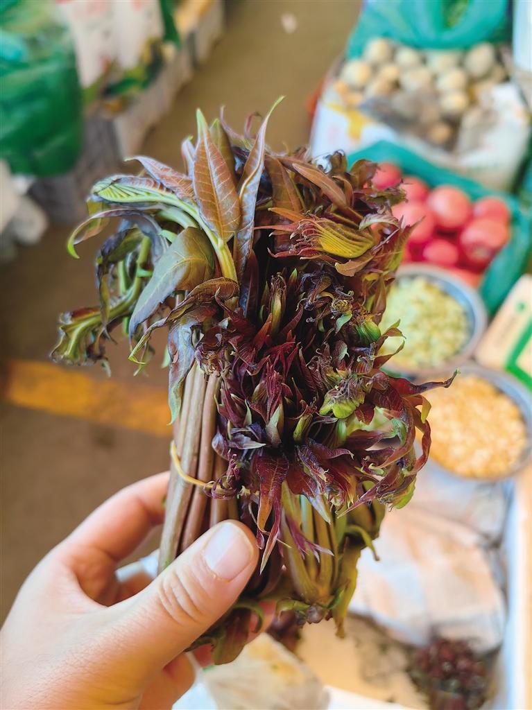 香椿芽堪稱是“春天的珍饈”,素有樹上蔬菜的美稱?!拔业睦霞以诤颖?,每年春天香椿冒芽的時(shí)候,都會(huì)采摘香椿芽炒著吃,甚至吃不完的香椿芽還會(huì)用來做成香椿醬?!睆埮空f,在菜市場,她看到紫紅色的香椿葉,散發(fā)出獨(dú)特的香氣,立馬想買一點(diǎn)回家炒雞蛋吃。