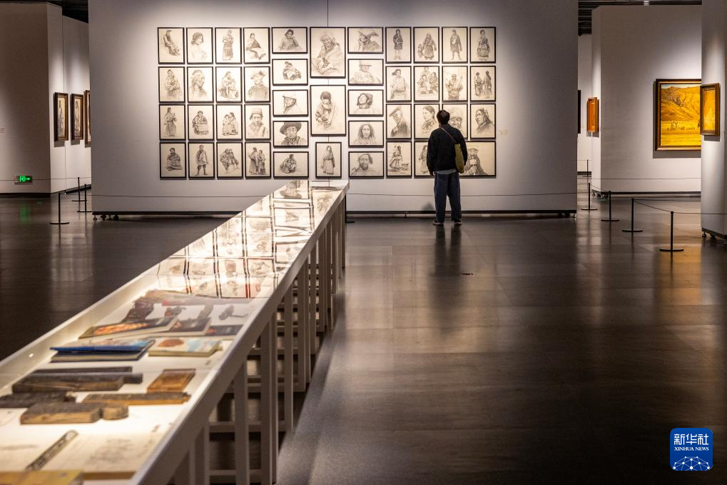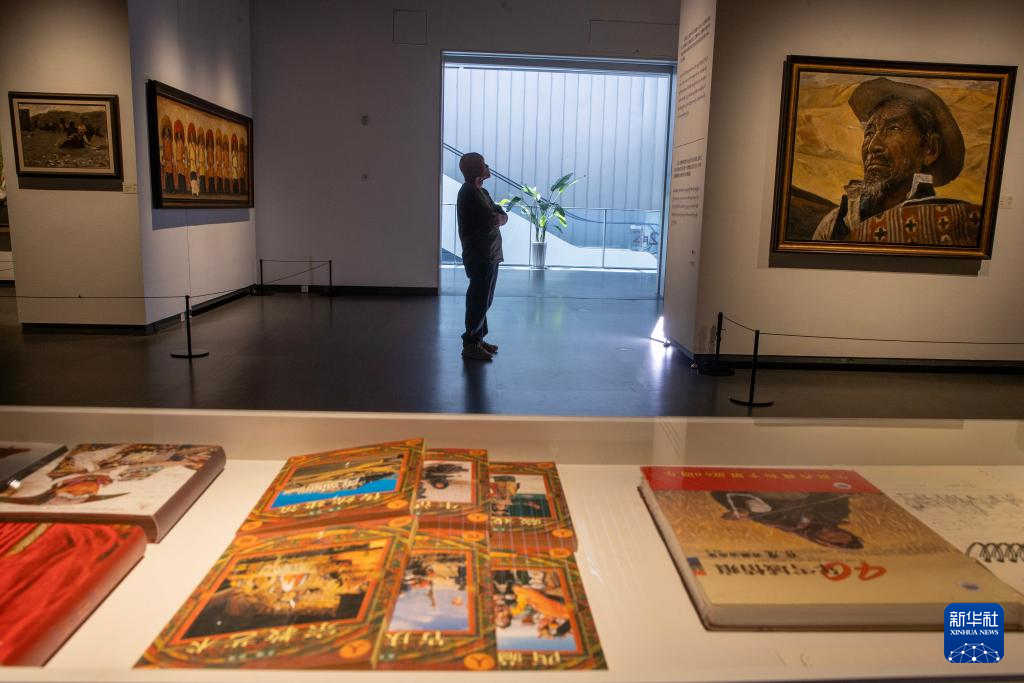觀眾在西藏美術(shù)館參觀張鷹的畫展(5月13日攝)。新華社記者 姜帆 攝