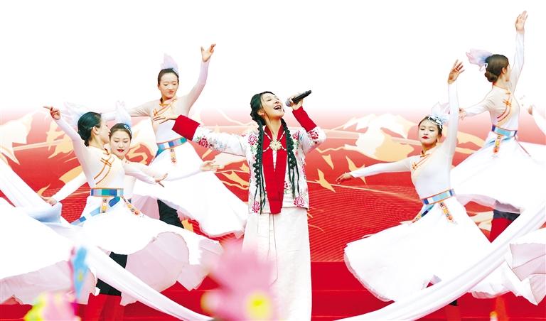 5月23日,在中國文藝志愿者服務日到來之際,由中國文聯(lián)、西藏自治區(qū)黨委宣傳部、中國文藝志愿者協(xié)會共同主辦的“與人民同行”慰問演出在西藏會展中心廣場隆重舉行。這場慶祝西藏自治區(qū)成立60周年的文藝盛宴,在歌舞《鼓舞西藏》激昂的節(jié)奏中拉開帷幕。