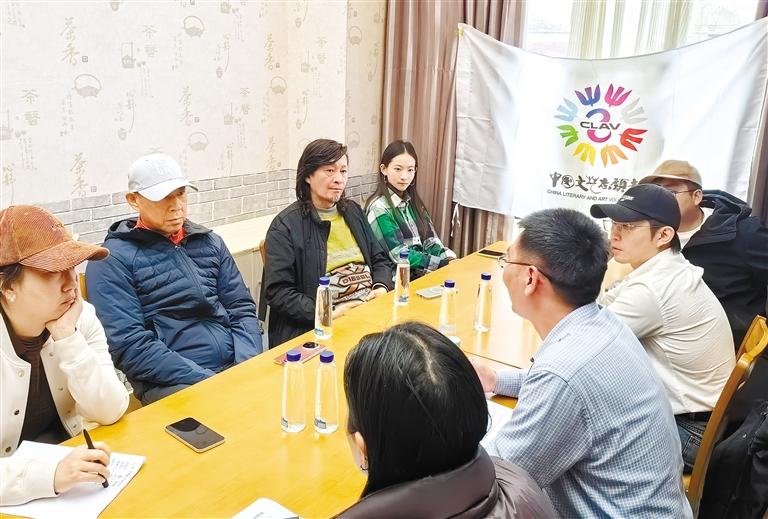 24日,中國文聯(lián)文藝志愿服務小分隊繼續(xù)深入當雄縣。影視表演藝術家張豐毅、美術家何加林、相聲演員金霏、盛偉以及歌手拉丹珠與當?shù)厮囆g團座談交流。當雄縣文聯(lián)和藝術團負責人詳細介紹了藏地傳統(tǒng)歌舞、非遺演藝的傳承現(xiàn)狀,并提出基層文藝人才培養(yǎng)、文旅融合創(chuàng)作等現(xiàn)實需求。藝術家們認真傾聽,分享創(chuàng)作經(jīng)驗,為當?shù)匚乃嚢l(fā)展建言獻策,為后續(xù)精準幫扶打下基礎。