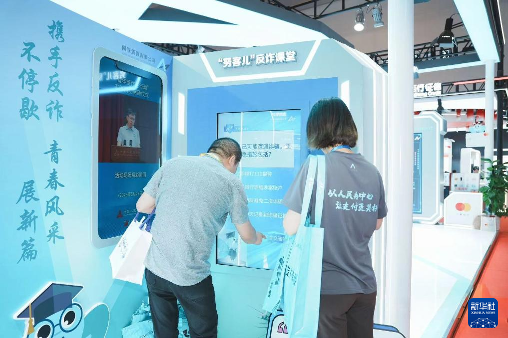 圖為2025中國(guó)國(guó)際金融展上,參觀者在網(wǎng)聯(lián)清算公司展臺(tái)參加反詐互動(dòng)答題。(網(wǎng)聯(lián)清算公司供圖)