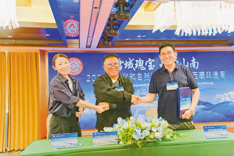 在全區(qū)非遺招商引資及項(xiàng)目簽約會上,4家企業(yè)負(fù)責(zé)人分別介紹公司發(fā)展歷程、市場前景、合作意向、未來計(jì)劃等情況。乃東區(qū)人民政府、乃東區(qū)文化和旅游局、西藏卓番林文化有限公司、北京依文服飾股份有限公司等一同簽訂了項(xiàng)目合作協(xié)議。