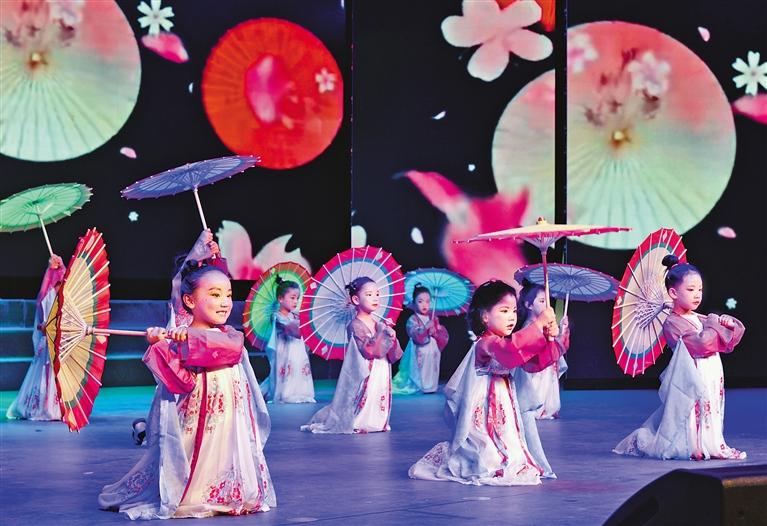 圖為拉薩市實(shí)驗(yàn)幼兒園東城分園中班年級(jí)舞蹈隊(duì)表演的舞蹈《百舞驚鴻》。 記者 旦增蘭澤 攝