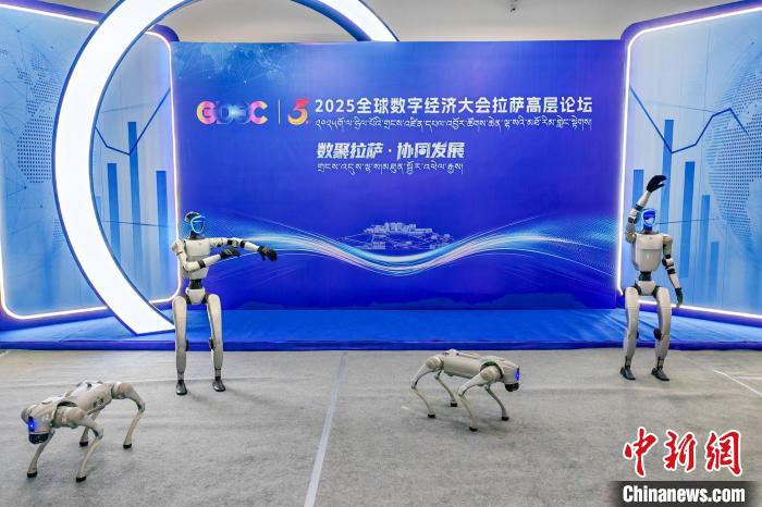 7月17日,2025全球數(shù)字經(jīng)濟(jì)大會(huì)拉薩高層論壇上展示的機(jī)器人?!≈行律缬浾?江飛波 攝