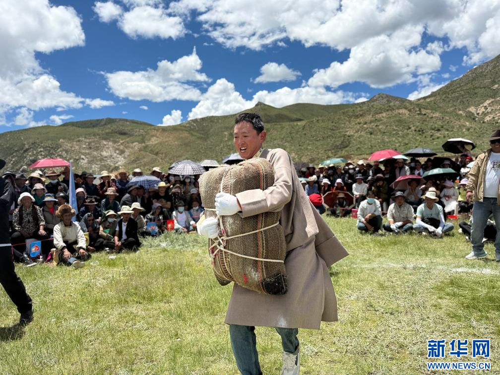 此次運動會集競技、文藝、特色產(chǎn)業(yè)展示于一體,亮點紛呈。拔河比賽中,參賽隊員齊心協(xié)力,觀眾吶喊助威,展現(xiàn)出團結(jié)奮進的精神風(fēng)貌;抱沙袋、押加等傳統(tǒng)項目激烈角逐,卡乃村村民普布扎西奪得抱沙袋男子組冠軍,他激動地表示:“和大家一起拼搏奪冠,特別有意義!” ??