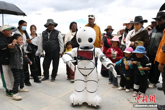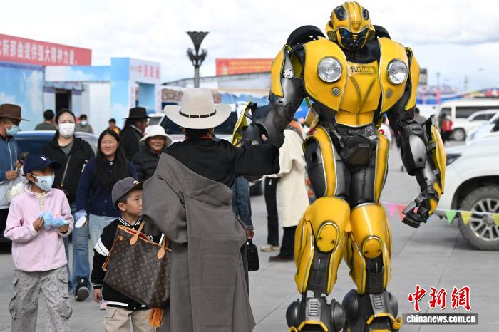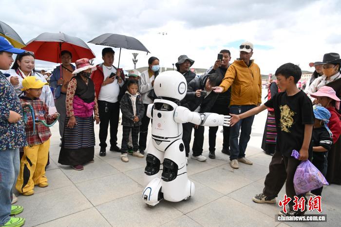 9月6日,西藏自治區(qū)那曲市恰青賽馬節(jié)現(xiàn)場,一場別開生面的互動熱鬧上演。機器人的驚喜亮相,為這座古老的草原盛會注入了新鮮科技感。它們造型獨特、動作靈活,大家紛紛上前與機器人握手、合影,互動氛圍格外熱烈。這種傳統(tǒng)節(jié)日與現(xiàn)代科技的創(chuàng)新融合,正碰撞出別樣的節(jié)日火花。圖為機器人與小朋友互動。中新社記者 貢嘎來松 攝