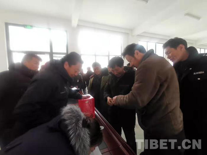 經(jīng)過四天的路途,1月1日,載著從昌都遠(yuǎn)道而來的群眾和行李的大巴車及卡車緩緩駛?cè)肷侥鲜屑硬榭h易地扶貧搬遷安置點,這標(biāo)志著昌都市三巖片區(qū)跨市易地扶貧搬遷群眾順利入住新家,一場跨越千余公里的遠(yuǎn)行隨之結(jié)束。當(dāng)?shù)叵嚓P(guān)部門負(fù)責(zé)人為每一名搬遷群眾送上潔白的哈達(dá),祝賀他們順利入住,32戶240名群眾將在這里開啟幸福新生活。