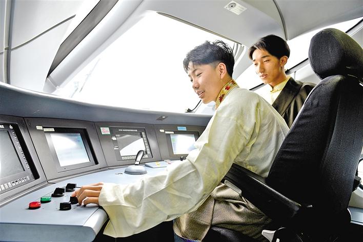 來自山西大學(xué)附屬中學(xué)西藏班的學(xué)生們在返鄉(xiāng)前,走進太原動車所探秘高鐵。圖為學(xué)生在動車機械師的引導(dǎo)下,體驗高鐵技術(shù)。張晉彤 記者 丹增平措 攝