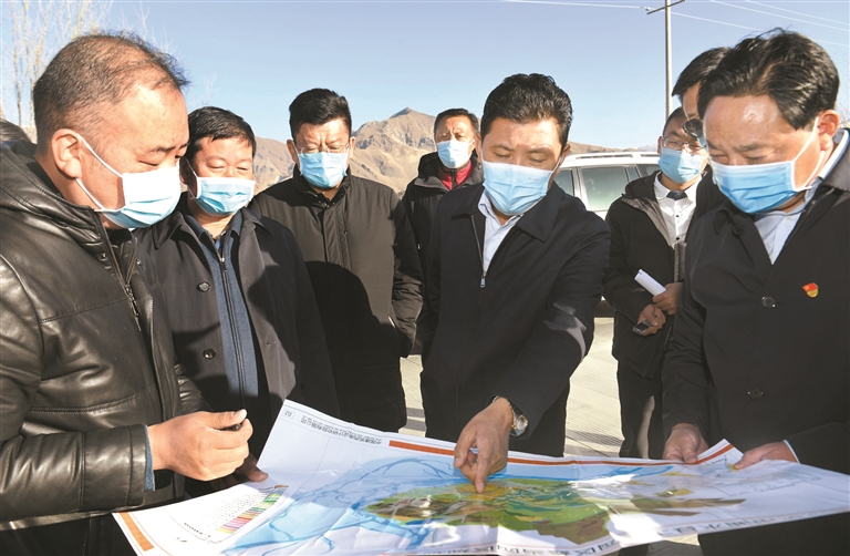 17日上午,市委副書記、市長、城關(guān)區(qū)委書記、市應(yīng)對新冠肺炎疫情防控工作領(lǐng)導(dǎo)小組組長果果,在聶當(dāng)工業(yè)園經(jīng)開區(qū)西區(qū)規(guī)劃建設(shè)點(diǎn)上,仔細(xì)查看園區(qū)建設(shè)影像圖,詳細(xì)了解園區(qū)規(guī)劃布局。 拉薩融媒記者 巴桑次仁攝