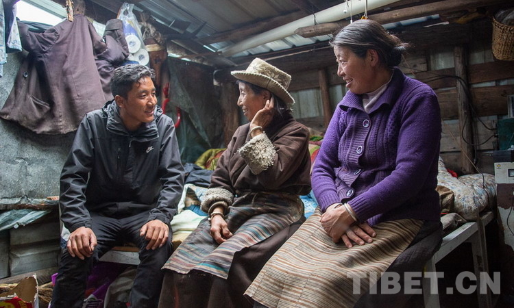 圖為土旦平措(左)正在與卓嘎(中)、央宗(右)了解用電需求 攝影:趙耀