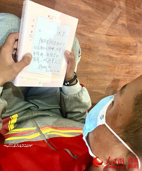 郭明義一對(duì)一的幫扶學(xué)生在看郭明義給自己寫的寄語。廉夢(mèng)歌 攝