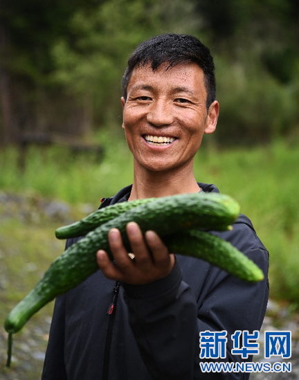 7月30日,當(dāng)?shù)厝罕娬故敬笈锢锊烧狞S瓜,這些蔬菜將通過供銷社銷往各地。新華社記者 普布扎西 攝