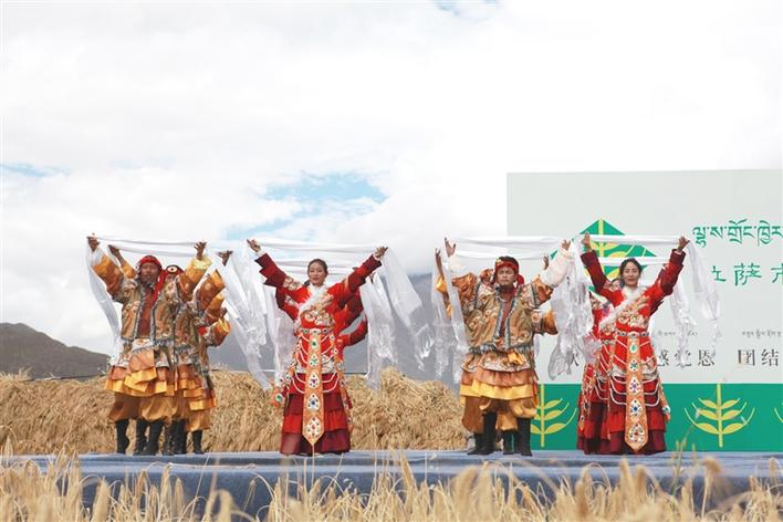 春種一粒粟,秋收萬顆子,今年又是一個(gè)豐收年!在這金秋颯爽、碩果累累的季節(jié)里,9月22日上午,拉薩市第三屆中國農(nóng)民豐收節(jié)在堆龍德慶區(qū)隆重舉行。本次豐收節(jié)慶?;顒游舜笈r(nóng)牧民朋友匯聚于此,使得活動開幕式現(xiàn)場熱鬧非凡,在一片豐收的青稞田里,人們載歌載舞,分享豐收的喜悅。文/圖 記者 趙夢茹