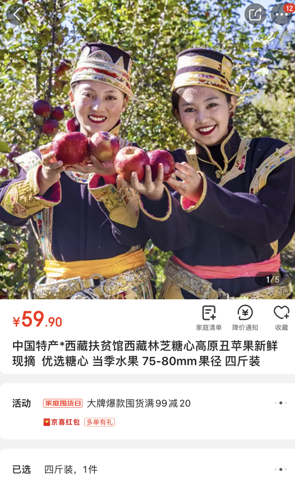 11月23日,隨著全國電子商務進農(nóng)村綜合示范西藏整區(qū)推進項目林芝市電子商務公共服務中心開業(yè)暨電商助力脫貧攻堅“林芝蘋果”上行京東西藏扶貧館啟動儀式在林芝市巴宜區(qū)舉行,“林芝蘋果”也正式依托中國特產(chǎn)西藏扶貧館等電商渠道進行銷售。