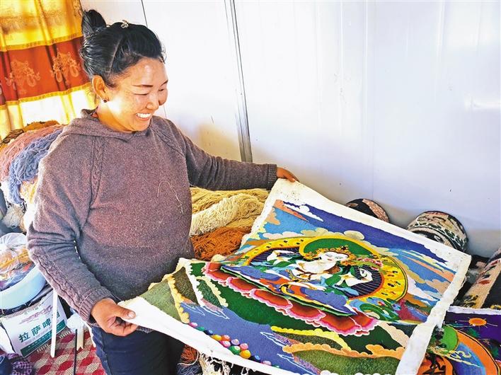 西藏日喀則市易地扶貧搬遷點群眾展示自己的藏繡作品。[詳細(xì)] -