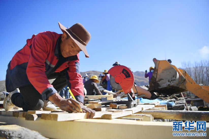 村民普布卓瑪家正在翻修舊房子。十幾個工人分工協(xié)作,分別承擔(dān)了切割木板、澆水泥、砌磚墻等工作,施工現(xiàn)場熱火朝天,井然有序。普布卓瑪說:“這幾年收入多了,生活好了,就想著把房子再翻修一下。”