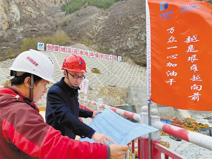 大古水電站工程技術(shù)人員正在指導(dǎo)施工。記者 袁海霞 鄭璐 攝