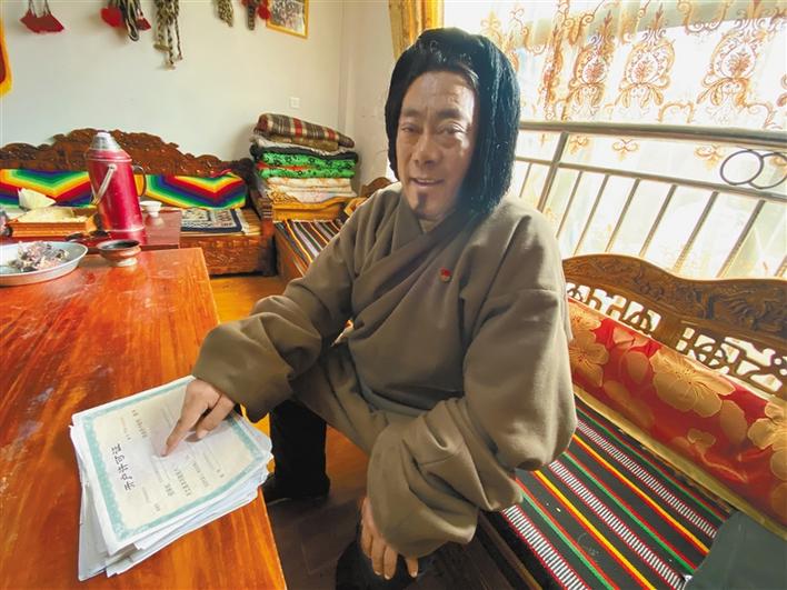 “沒有黨和政府的惠民政策,我一輩子都不可能住上這么好的房子?!崩痈袊@道。藏式二層小樓被妻子同珍打理得干凈整潔,房間里嶄新的藏式家具、墻上懸掛的風干牛肉、桌子上冒著熱氣的酥油茶……看得出主人家的日子很富足。