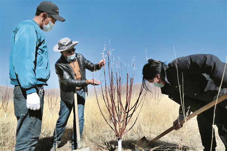 “果樹要修剪,每年開春都要剪掉干枯枝、病枝、細(xì)弱枝、重疊枝、去年掛果枝等,保留健康新生枝,這樣秋季果樹便會碩果累累……”工卡村第一書記李學(xué)龍一邊拿著剪刀修剪果樹,一邊給村民們傳授果樹修剪、覆土保墑、澆水施肥、防止鼠害等經(jīng)驗。李學(xué)龍是一名退伍兵人,森林防火滅火、野生動植物保護(hù)、植樹造林綠化都是他的“老本行”,在工卡鎮(zhèn)擔(dān)任第一書記后,他還跟著拉薩市林業(yè)綠化局專業(yè)人員學(xué)習(xí)了果樹栽培、修剪等技術(shù)。