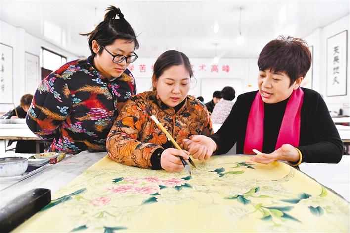 山東省菏澤市巨野縣依托“菏澤牡丹”的資源優(yōu)勢,近年來著力打造工筆牡丹畫文化產(chǎn)業(yè),鞏固脫貧攻堅成果,有序推進(jìn)鄉(xiāng)村振興。目前,巨野縣有50個繪畫專業(yè)村,從業(yè)人員達(dá)1.5萬人。巨幅工筆牡丹畫作品先后亮相上合組織青島峰會、中國國際進(jìn)口博覽會等重大活動。