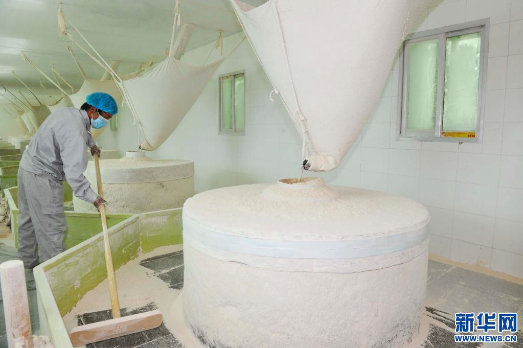 一名工人在西藏白朗縣的康桑農(nóng)產(chǎn)品發(fā)展有限公司水磨車間工作。(2015年6月30日攝)新華社記者 張汝鋒 攝。