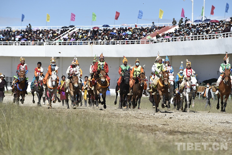 圖為那曲市2020羌塘恰青格薩爾賽馬藝術(shù)節(jié)場(chǎng)內(nèi)速度賽馬比賽現(xiàn)場(chǎng),少年們策馬而行(資料圖)
