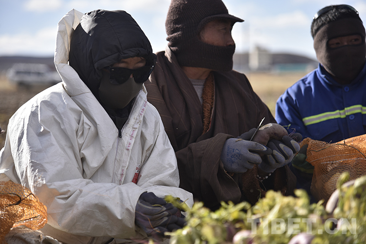 圖為嘎爾德生態(tài)畜牧產業(yè)示范基地里員工正收割芫根 攝影:王媛媛