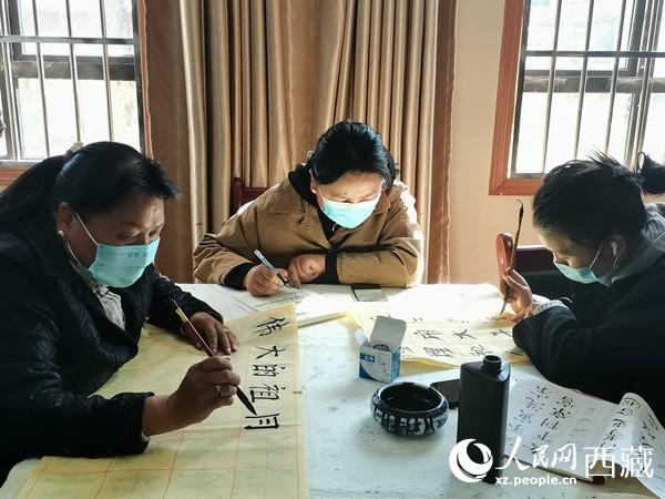“村里有好多人喜歡書法,恰好城關(guān)區(qū)開展新時(shí)代文明實(shí)踐站·一村一特色文化品牌村(社區(qū))創(chuàng)建活動(dòng),我們就想著往這個(gè)方面打造一下。”蔡村第一書記土登洛桑介紹。如今,每逢周六,村里會(huì)邀請(qǐng)拉薩市文聯(lián)、拉薩市書法家協(xié)會(huì)的書法名家,為熱愛書法的村民們傳授技藝。