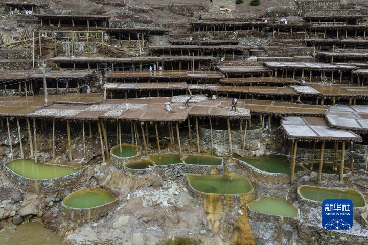 加達村村民在古鹽田里勞作(5月26日攝)。新華社記者 陳尚才 攝