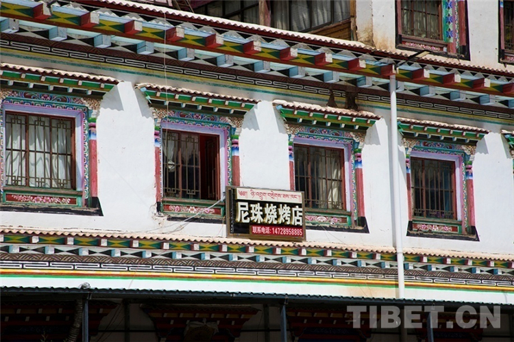依山而建的藏式三層小樓里,丁增拉姆將房屋裝修得華麗亮堂,墻壁上繪有吉祥圖案,天花板與地板相接的立柱滿是精致的雕刻和彩繪,掛著吉祥的哈達(dá)。門(mén)外小院臺(tái)階旁的葡萄藤密密地纏繞在架子上,成串果實(shí)掛在枝頭。單獨(dú)分離出來(lái)的廚房和餐廳,也是孩子們的游樂(lè)場(chǎng),沐浴著陽(yáng)光下棋、讀書(shū),一片歡聲笑語(yǔ)??拷鼧求w的小小花壇自然隔開(kāi)了生活區(qū)和商業(yè)區(qū),一樓就是丁增拉姆家的尼珠燒烤店。沿著馬路的空地,搭建了長(zhǎng)長(zhǎng)的涼棚,夜晚在這里和三五好友吃著燒烤,吹著清涼的風(fēng),望著閃耀的星星,談?wù)勅松屠硐?,再舒服不過(guò)了。