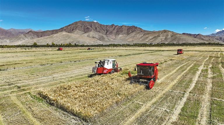 日喀則市素有“西藏糧倉”的美譽,西藏一多半的青稞都產自這里。9月的日喀則,青稞飄香,各縣區(qū)全面進入秋收,廣大農牧民搶抓有利時機,在田間地頭忙碌。目前全市收割面積已達74萬余畝,秋收進度與往年基本一致。