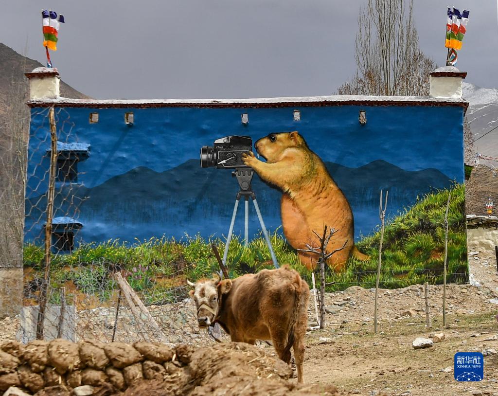 這是4月10日在拉薩市達孜區(qū)章多鄉(xiāng)恰村拍攝的墻畫。新華社記者 孫非 攝