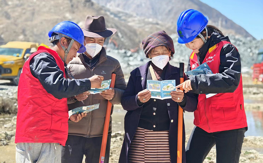 國網(wǎng)曲水縣供電公司共產(chǎn)黨員服務(wù)隊在拉薩市曲水縣茶巴拉鄉(xiāng)色麥村開展春耕春灌安全用電宣傳(4月7日攝)。國網(wǎng)西藏電力供圖 旦增央卓 攝