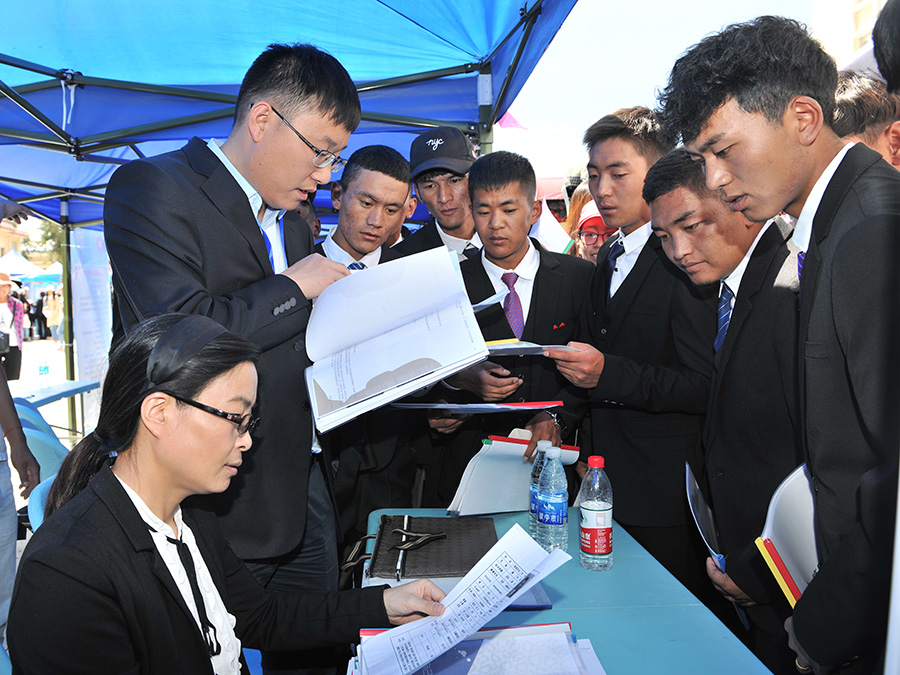國網(wǎng)西藏電力有限公司人資部組織參加2018年中央企業(yè)區(qū)內(nèi)國有企業(yè)面向西藏高校畢業(yè)生和貧困家庭勞動力專場招聘會(2018年9月6日攝)。國網(wǎng)西藏電力供圖