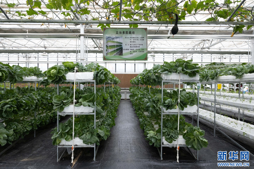 圖為曲水縣才納園區(qū)采用立體多層栽培的方式培養(yǎng)作物(8月20日攝)。 新華網(wǎng)發(fā) 李騰 攝