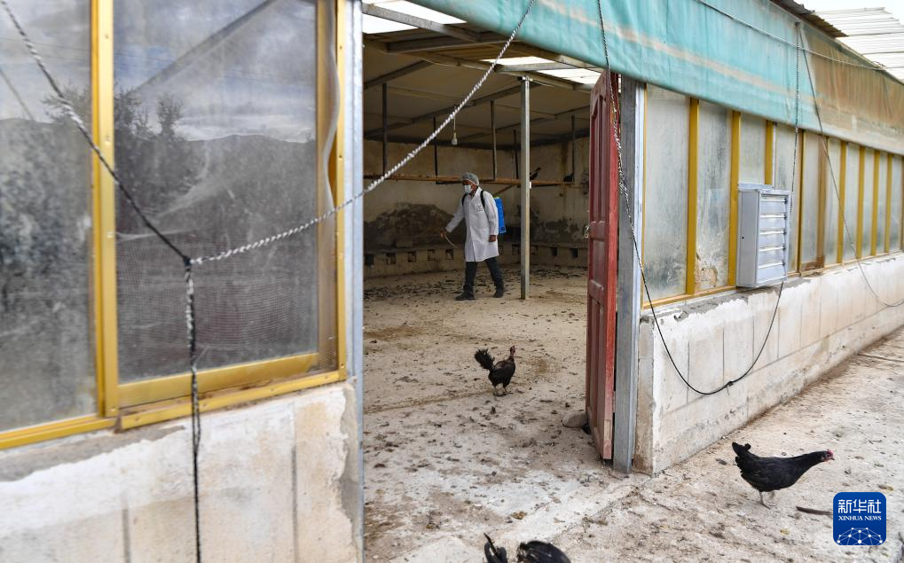 9月24日,合作社工作人員對雞舍進(jìn)行消毒。新華社記者 晉美多吉 攝