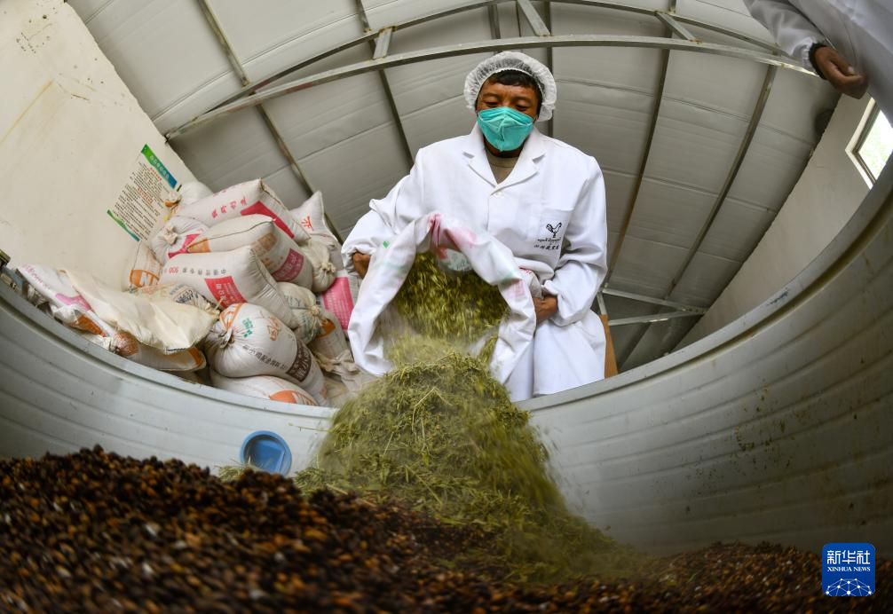 9月24日,合作社工作人員制作雞飼料。新華社記者 晉美多吉 攝