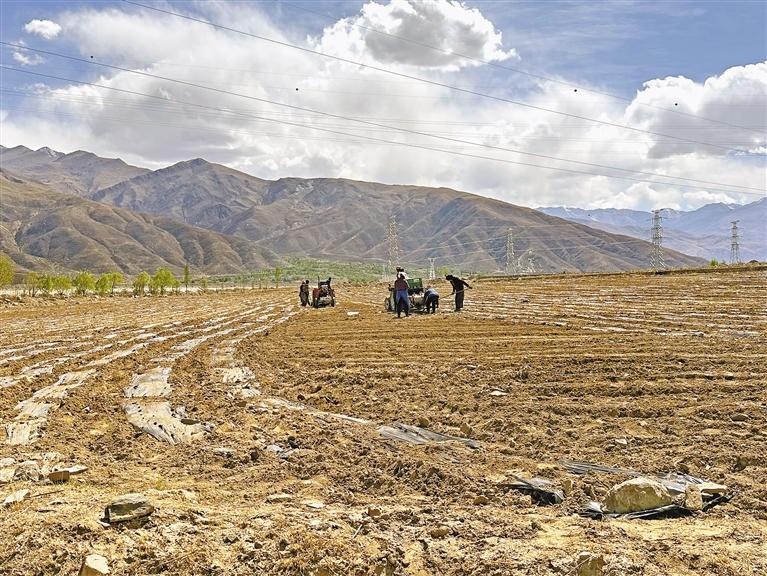回憶起剛開荒時(shí)的情形,洛珠達(dá)瓦說:“我們每天組織公司全體職工和村民30多人,以及多臺(tái)挖掘機(jī)、破石機(jī)、拖拉機(jī)等機(jī)械設(shè)備,連續(xù)工作了1個(gè)多月。地底石頭較多,機(jī)械設(shè)備用壞了好幾臺(tái)。即使對(duì)土地進(jìn)行了多次翻耕,但土地沙化依然嚴(yán)重,無法種植莊稼。”