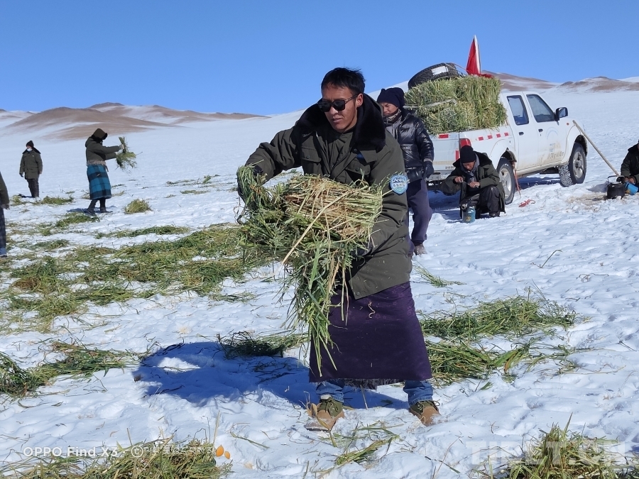 圖為贊康管理站站長邊巴給野生動物放草(邊巴供圖)